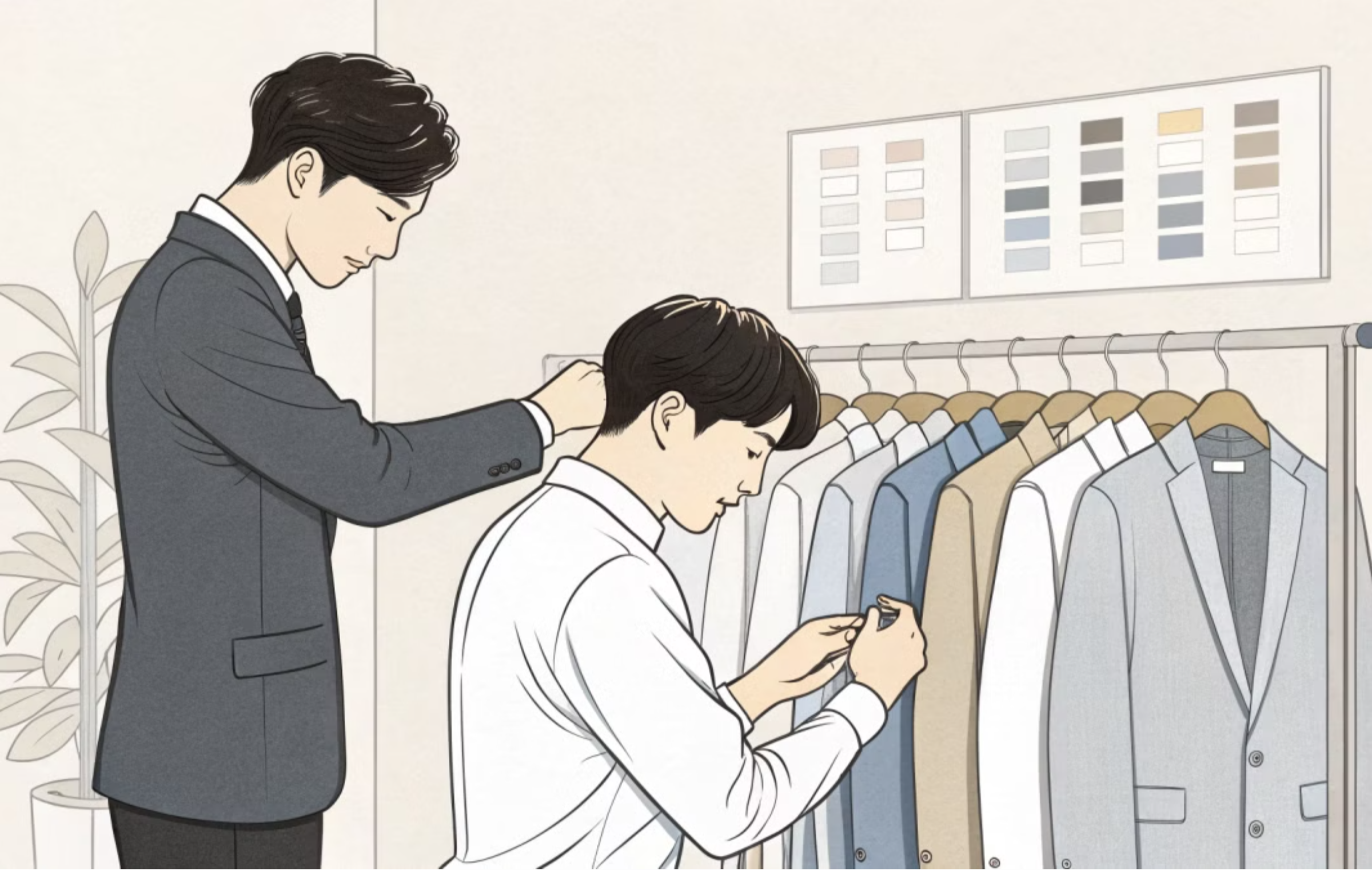 정장을 고르고 나면 가장 어려운 게 코디잖아요. 근데 로이젠은 고객 맞춤 코디 서비스도 제공해서 정말 편했어요. 체형에 어울리는 색감, 셔츠와 타이 조합까지 알려주셔서 너무 만족스러웠답니다. 제가 받은 코디 팁들을 간단히 정리해볼게요!