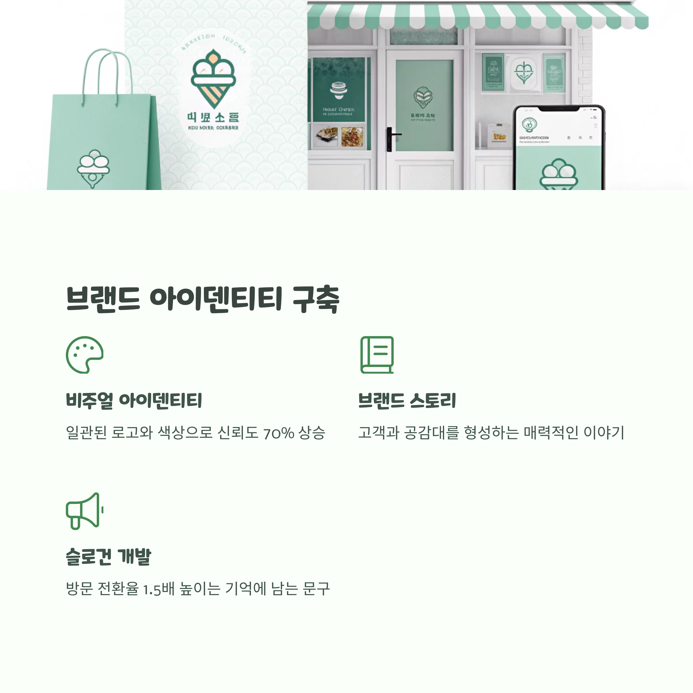 브랜드 아이덴티티는 매장 외관, 인테리어, 메뉴판, 직원 복장까지 모두 통일성을 가져야 합니다.