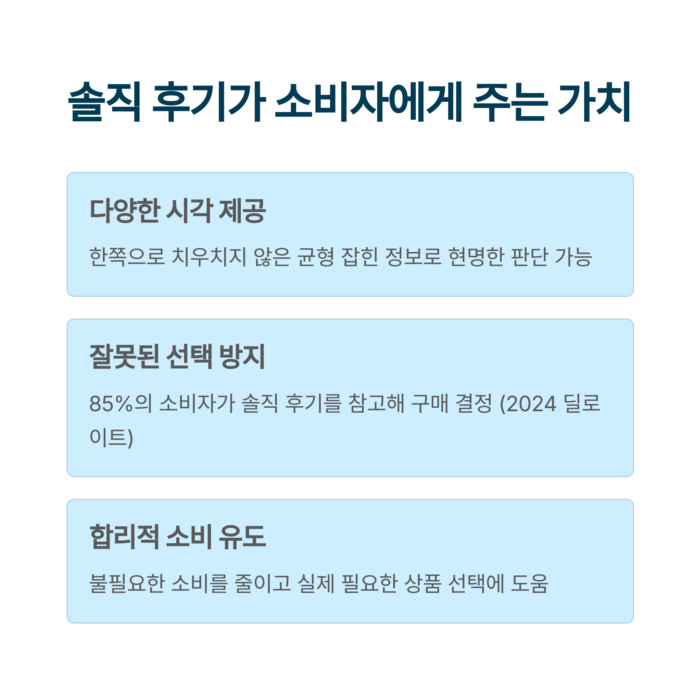 첫째, 솔직한 후기는 소비자가 합리적인 결정을 내리는 데 필수적인 정보를 제공합니다.