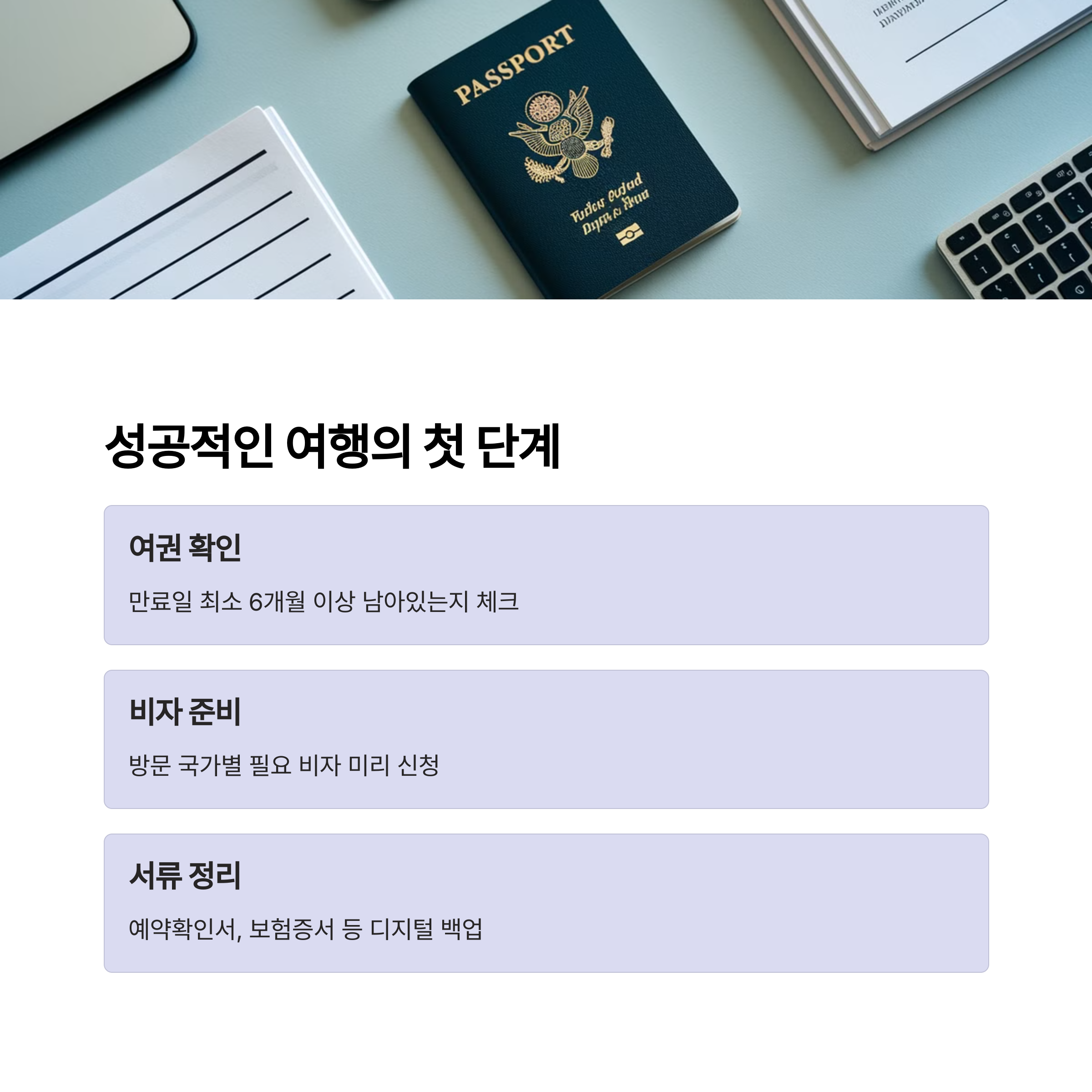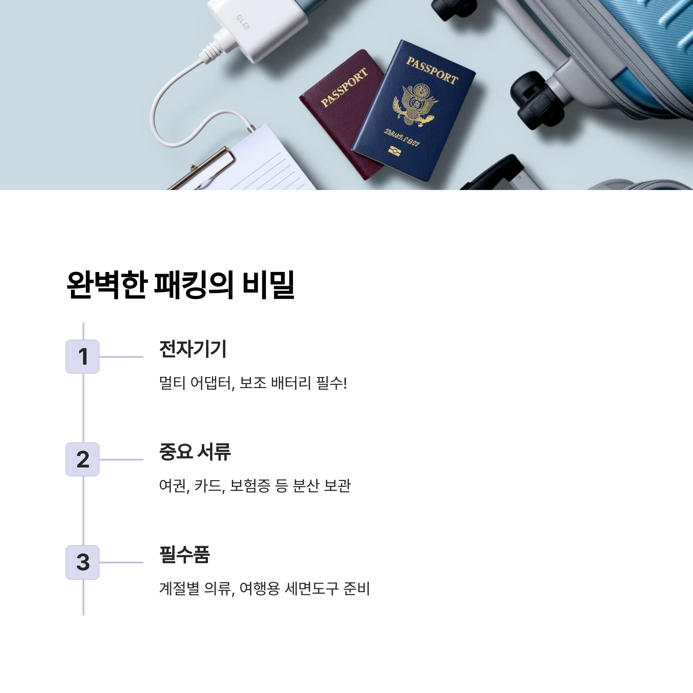 - ✔ 여권 및 여행 서류