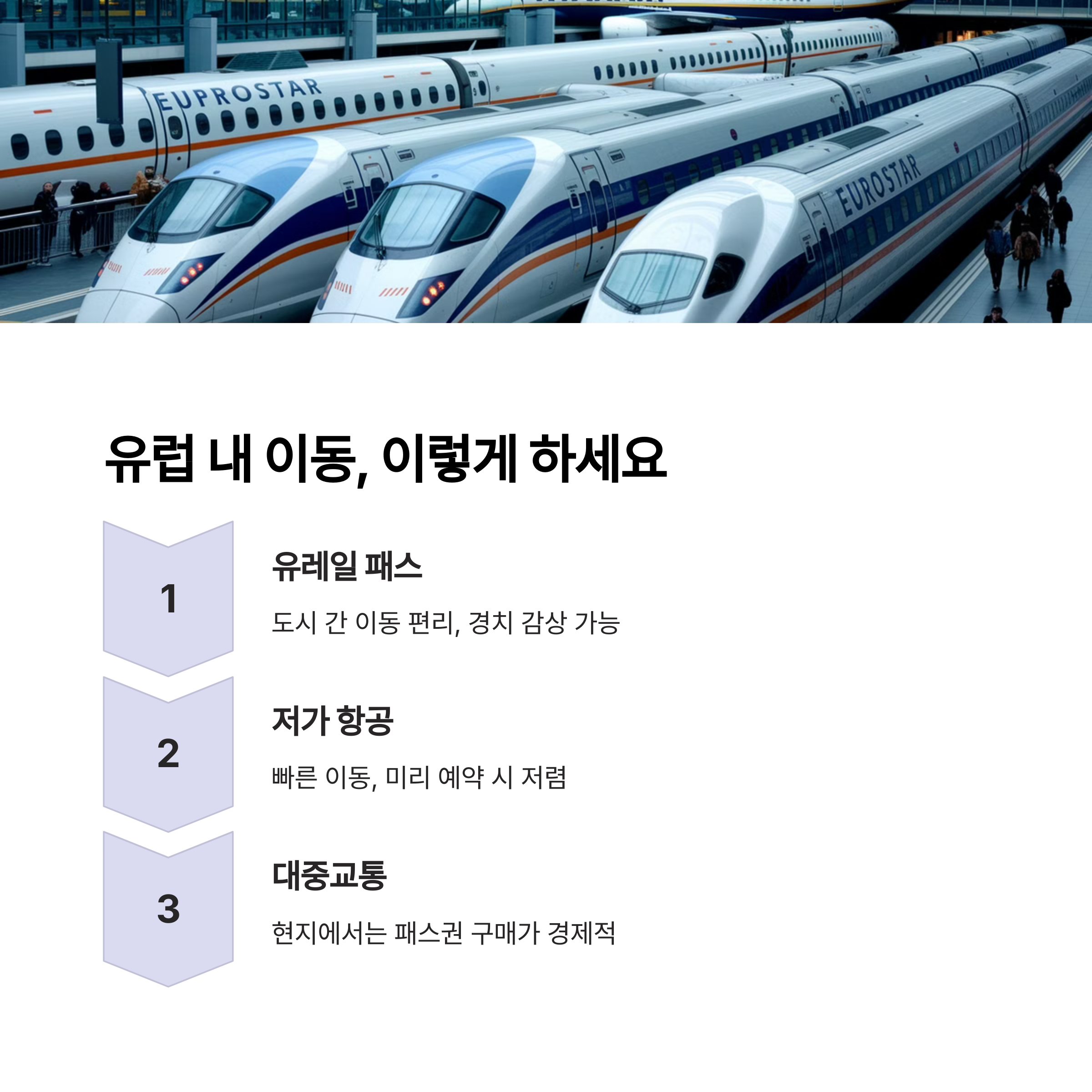 유럽에서는 기차와 저가항공을 활용해 도시 간 이동을 쉽게 할 수 있습니다. 각각의 장단점을 살펴볼까요?