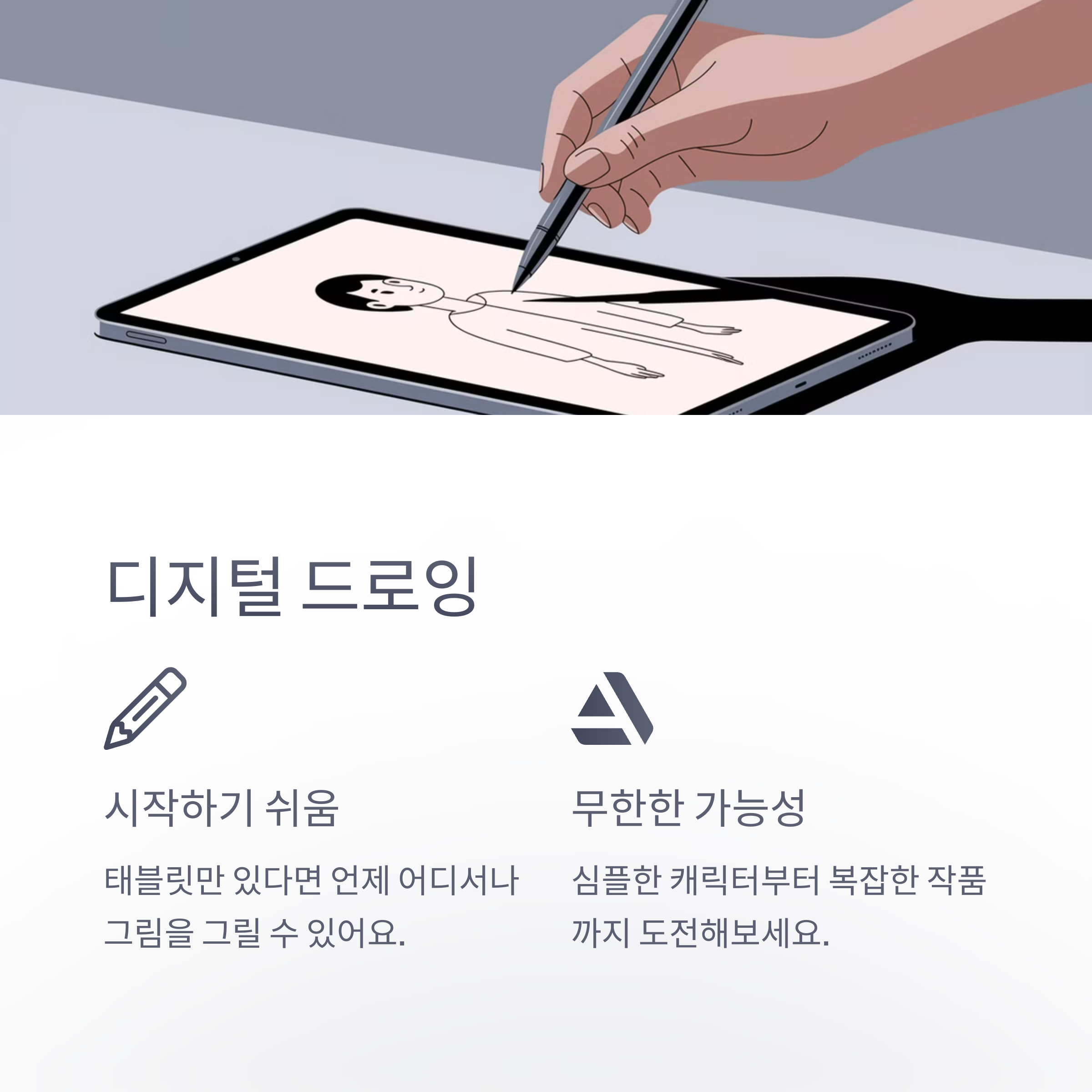 디지털 드로잉(Digital Drawing)은 종이와 펜 없이 태블릿과 스타일러스로 그림을 그리는 취미예요. 기본적으로 아이패드와 Procreate, 클립스튜디오 같은 앱을 활용하면 손쉽게 시작할 수 있어요.