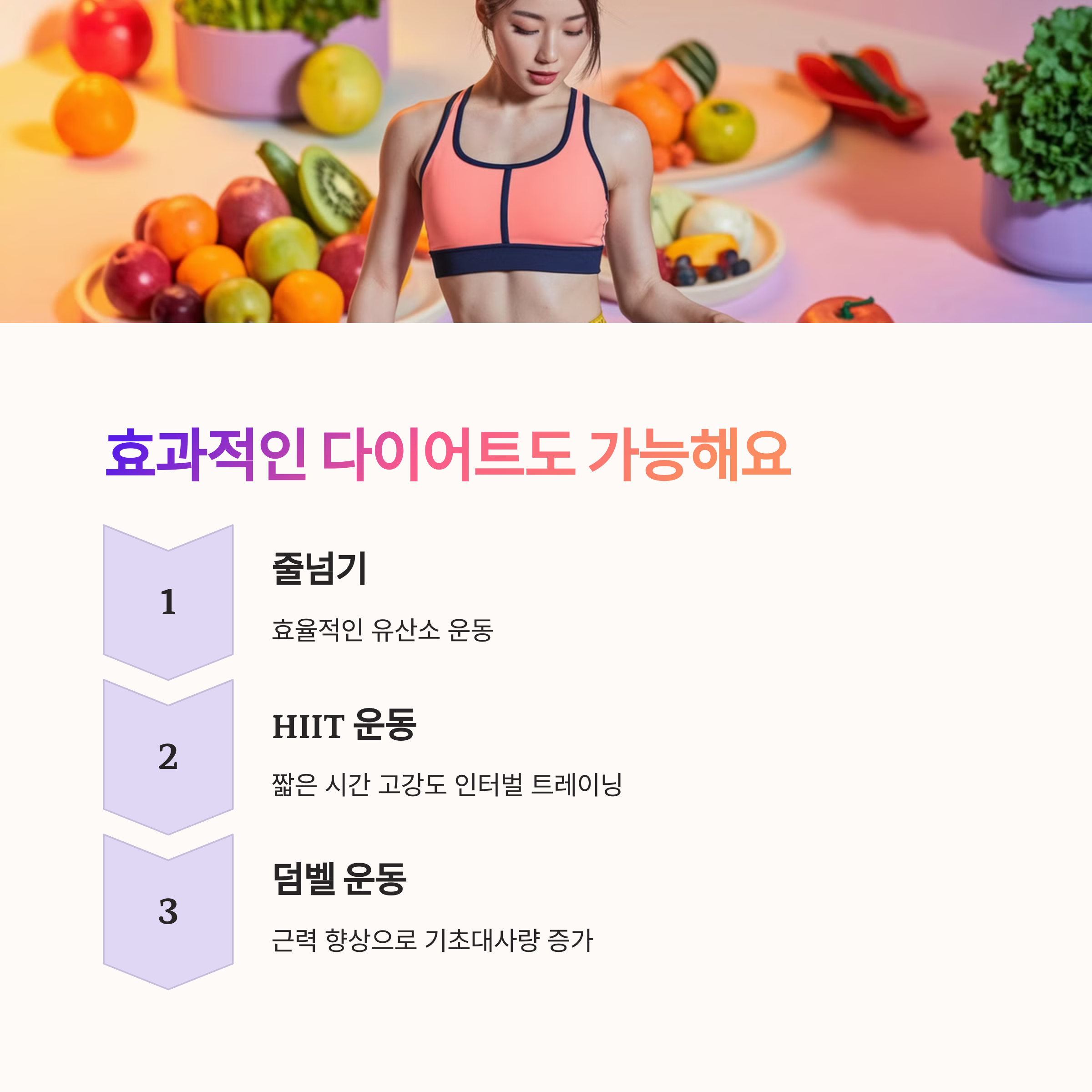 네, 가능합니다! 줄넘기, HIIT 운동, 덤벨 근력 운동 등을 병행하면 유산소와 근력 운동을 함께 할 수 있어 효과적인 체중 감량이 가능합니다.
